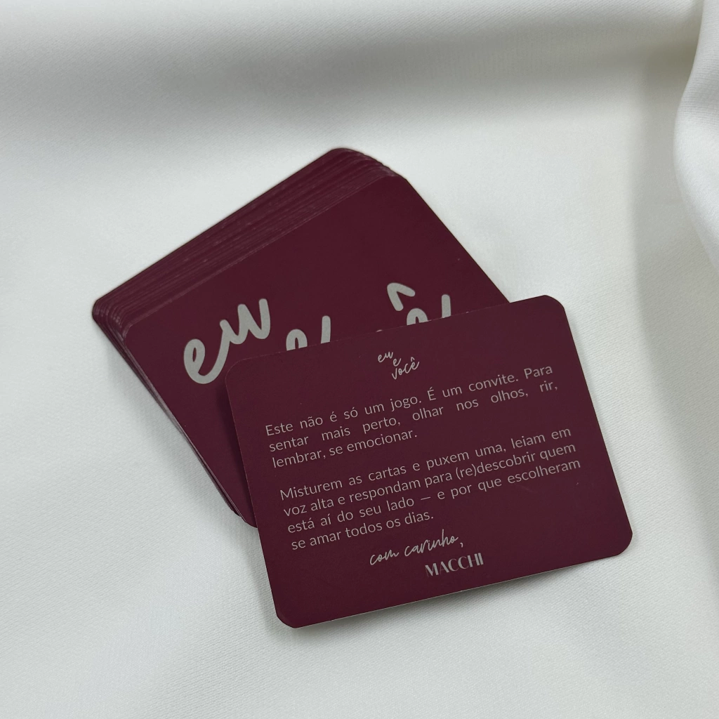 Como jogar: Misturem as cartas e puxem uma, leiam em voz alta e respondam para (re)descobrir quem está aí do seu lado e por que escolheram se amar todos os dias!